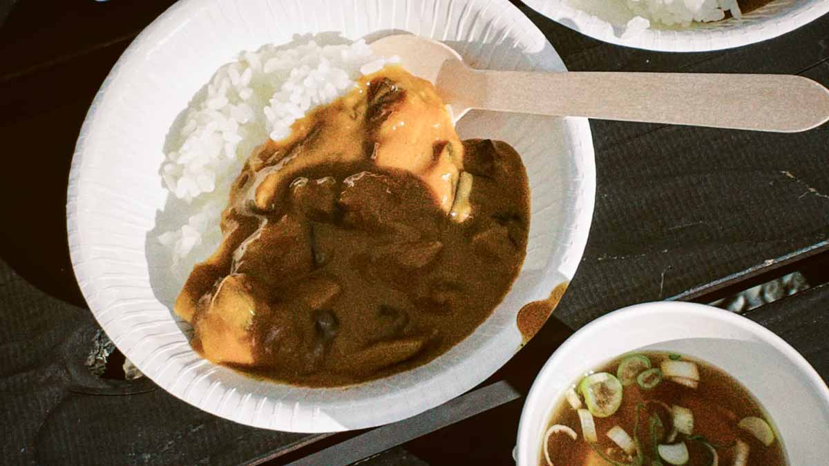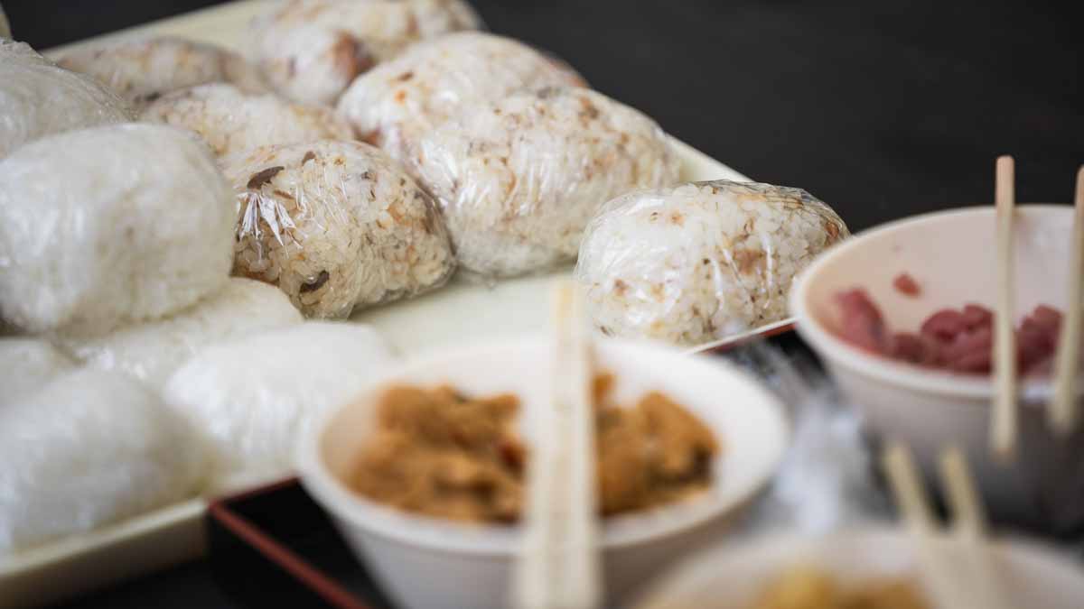 【きのこカレー】【各種おにぎり】【焼き鳥】【魚の素揚げ】【梅ジュース】など、ボリューム満点の食事です。